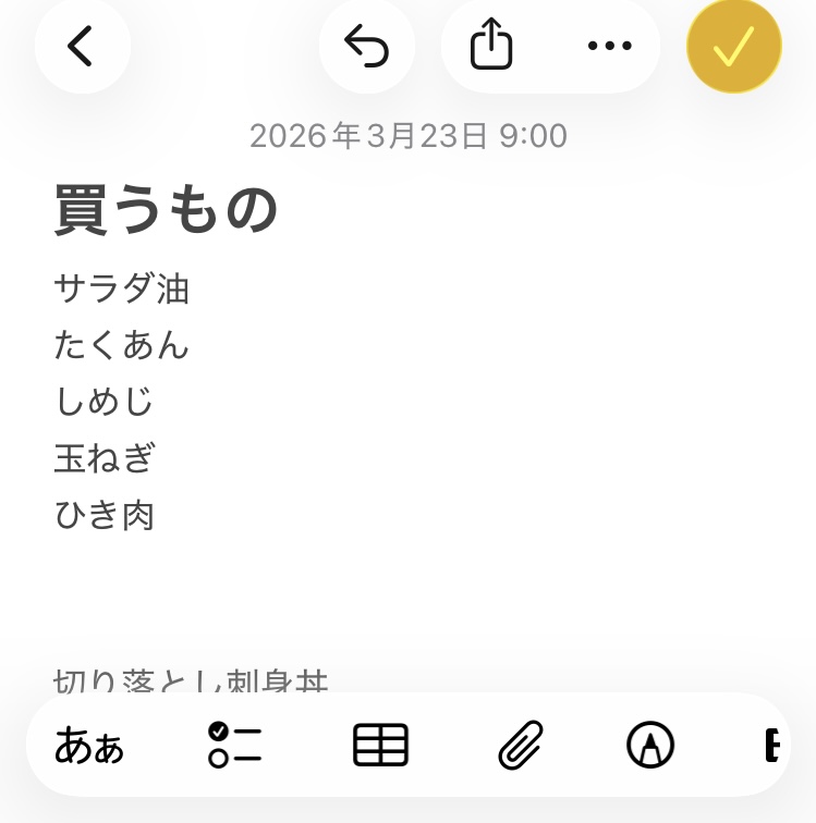 スマホのメモ機能を利用して買い足すものが頭に浮かんだらすぐに入力しておくといざスーパーに行ったときに買い忘れることがなくなります。必要なものをかごに入れた際にひとつづつ削除していくと更に見落としがなくなってとても便利です。